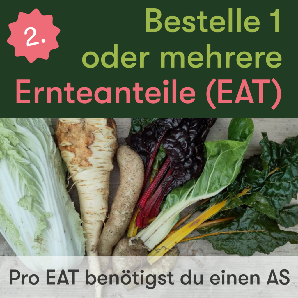 2. Bestelle einen oder mehrere Ernteanteile (EAT), abhängig von der Gemüsemenge, die du wöchentlich benötigst. Pro Ernteanteil benötigst du einen Anteilschein.